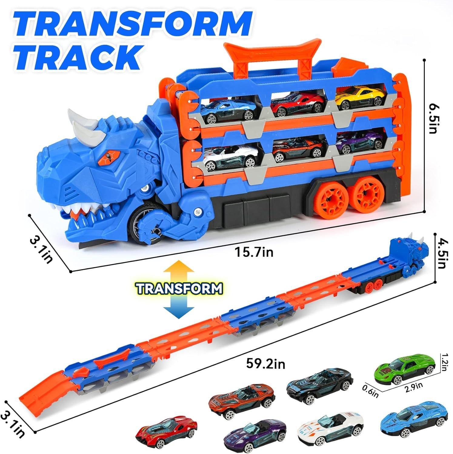 🎉This toy transforms into a dinosaur form, delivering an immersive play experience. Crafted from premium die-cast metal, it ensures long-lasting durability and resistance to wear during play. Encouraging children to freely switch between racing and dinosaur transformation, it sparks imaginative play.